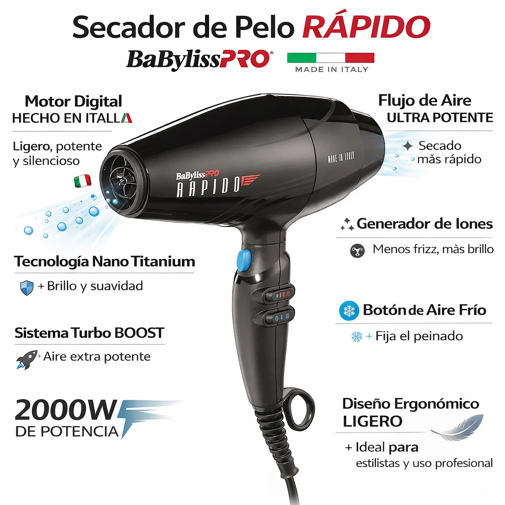 Potencia profesional en tiempo récord. Su motor digital italiano ofrece un secado ultra rápido, silencioso y preciso, mientras la tecnología Nano Titanium aporta brillo, suavidad y menos frizz. Liviano, ergonómico y diseñado para resultados impecables todos los días.