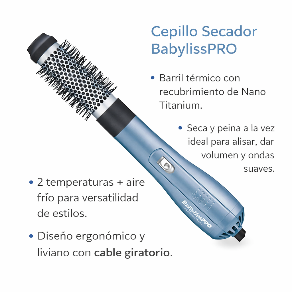 Cepillo Secador Voluminizador BabylissPro Nano Titanium 38mm