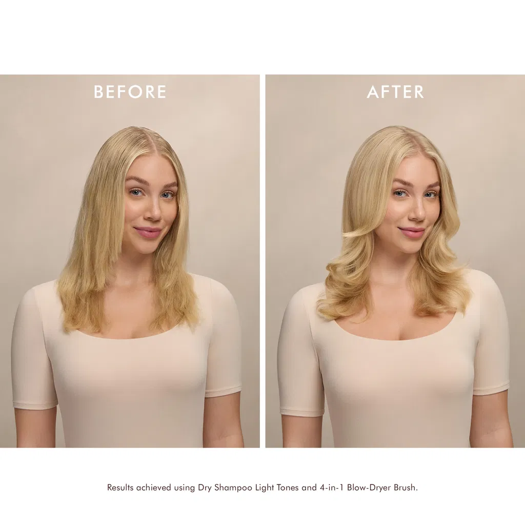 Shampoo seco para cabellos claros que absorbe la grasa y los residuos con almidón de arroz ultrafino, refresca el cabello y neutraliza tonos amarillos, gracias a sus pigmentos violetas y aceite de argán, dejando el pelo limpio, ligero, brillante, perfumado y sin residuos blancos.