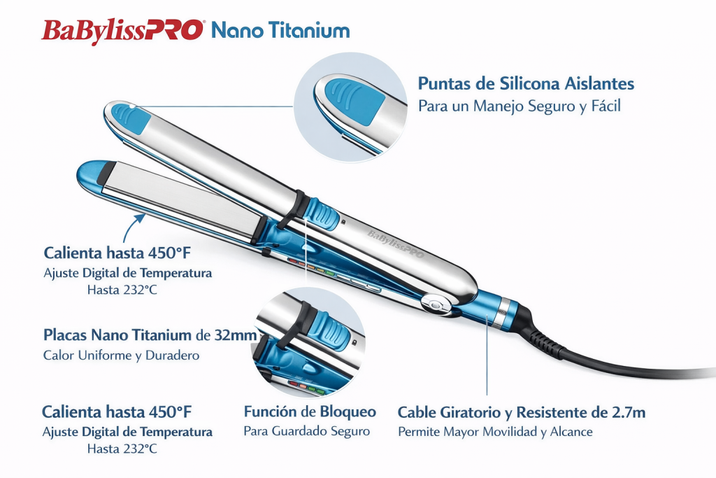 Plancha profesional de alto rendimiento, diseñada para un alisado rápido, duradero y ultra brillante. Sus placas de Nano Titanium distribuyen el calor de forma uniforme, reduciendo el frizz y protegiendo el cabello. Ideal para alisar, ondular y crear rizos, incluso en cabellos gruesos o rebeldes.