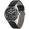 Reloj de hombre con diseño elegante y moderno, ideal tanto para el día a día como para ocasiones formales, Tiene Movimiento: Solar-powered (se recarga con luz) con cronógrafo para medir intervalos de tiempo y formato 24 h. Contiene Esfera oscura con detalles claros, caja de 44 mm de acero inoxidable y cristal mineral; Correa de cuero negro cómoda y elegante con cierre de hebilla, y tiene Resistencia al agua hasta 50m (5 ATM) (lluvia/salpicaduras).