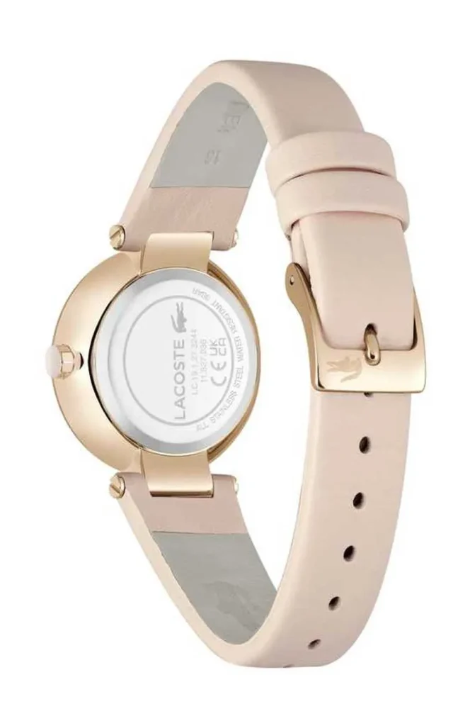 El Lacoste Orba Rosa LC‑2001335 es un reloj femenino que destaca por su diseño delicado y sofisticado. Presenta una caja de acero inoxidable en tono oro rosa, esfera rosada y correa de cuero que aportan un estilo elegante y moderno. Con movimiento de cuarzo preciso, cristal mineral resistente y resistencia al agua de hasta 30 m, es un accesorio ideal para complementar tanto looks diarios como ocasiones especiales.