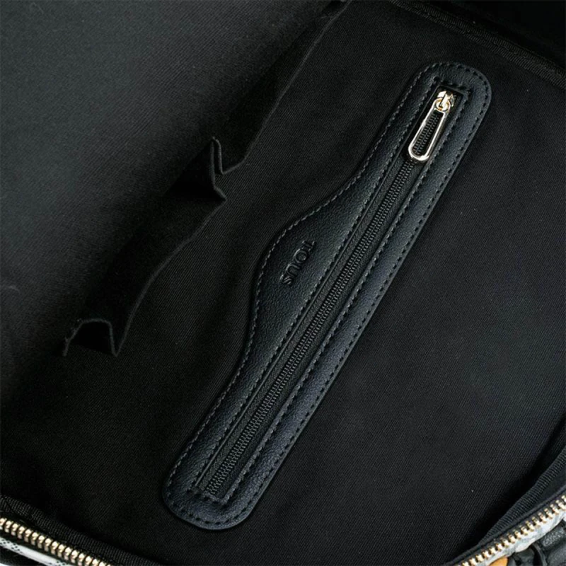 Es un accesorio femenino que combina estilo contemporáneo con funcionalidad diaria, ideal para quienes quieren un complemento versátil y con personalidad. Está confeccionada en vinilo con estampado Kaos en tonos beige y negro, una paleta elegante que aporta un look moderno sin perder sofisticación.